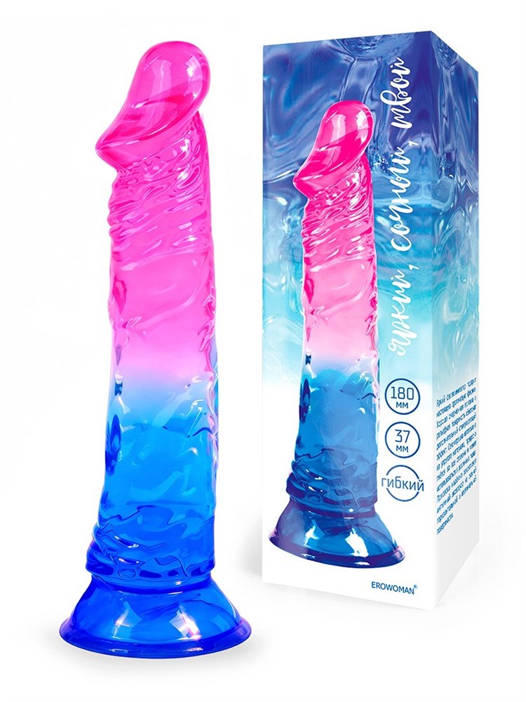 Фаллоимитатор гелевый на присоске EROWOMAN, розово-голубой, L 18 см, D 3,7 см